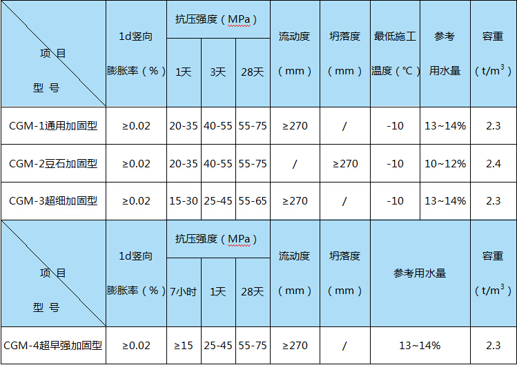 CGM无收缩环氧灌浆料技术指标