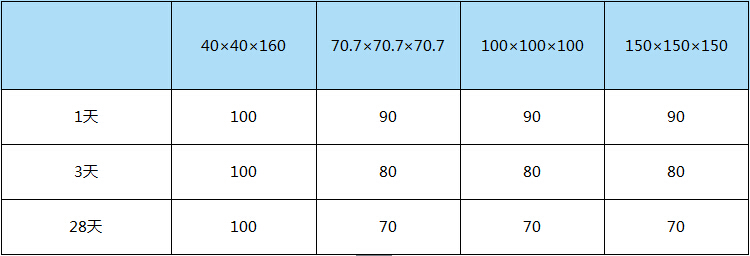 CGM无收缩环氧灌浆料各种试模尺寸间强度换算关系