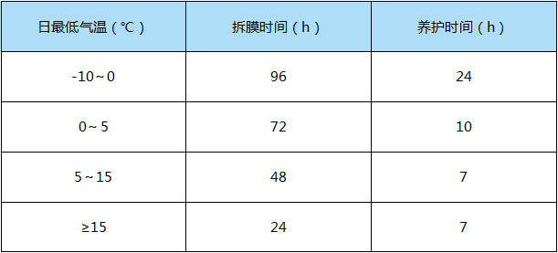 拆膜养护时间及环境温度关系
